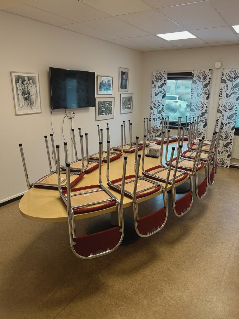 Den andra delen är Per Albin och har en whiteboardtavla för mer analoga mötesformer. Här finns uppbokat bord för 16 personer (fler bord och stolar finns i rummet). Kostnad för hyra av Per Albin framgår nedan.